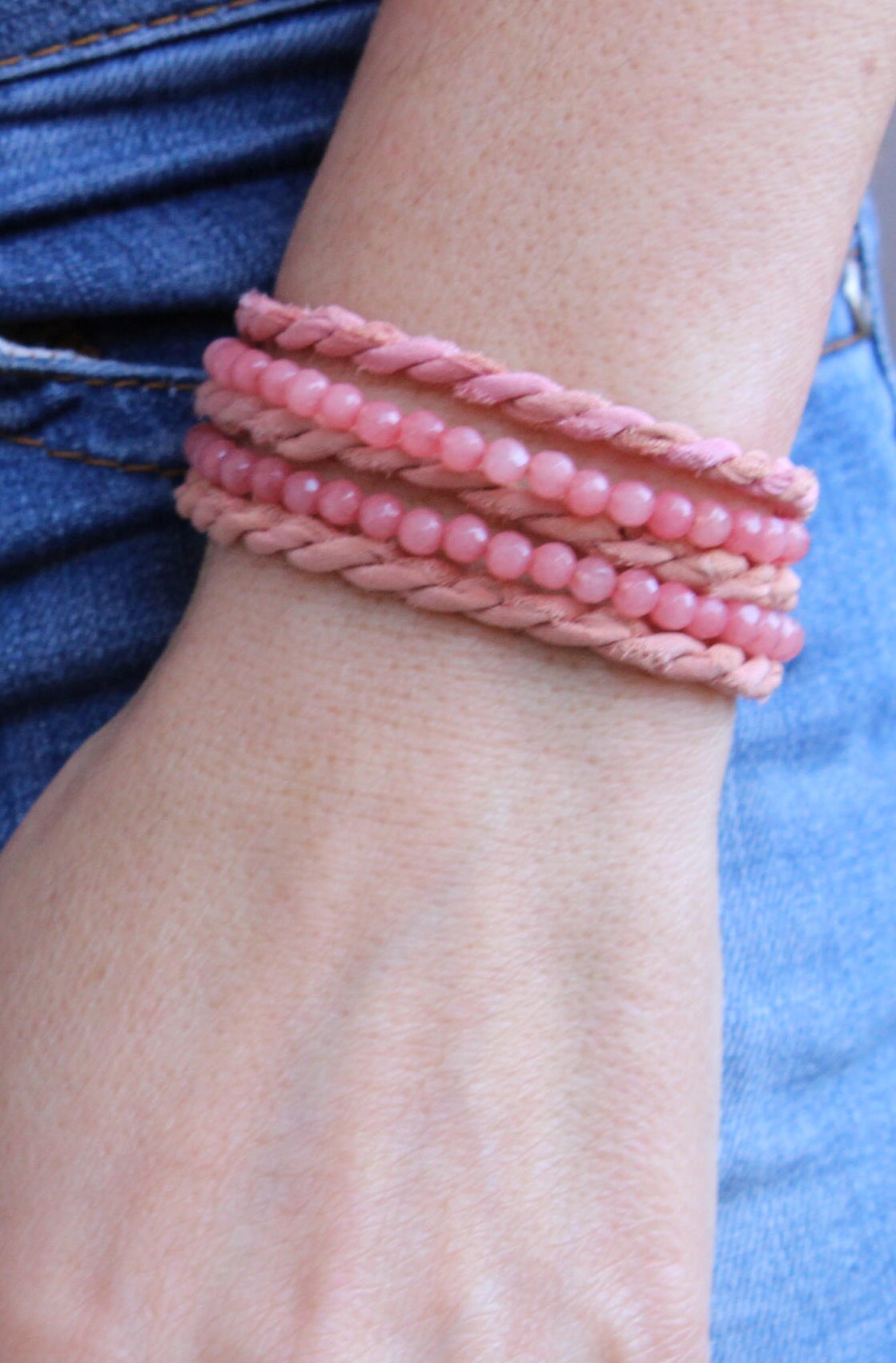 I designed and hand-made this baby pink bracelet, discrete and suitable for everyday use.