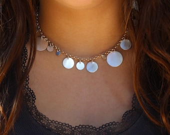 Handmade Sterling Silver Disc Choker Necklace: Dainty Greek Goddess Style